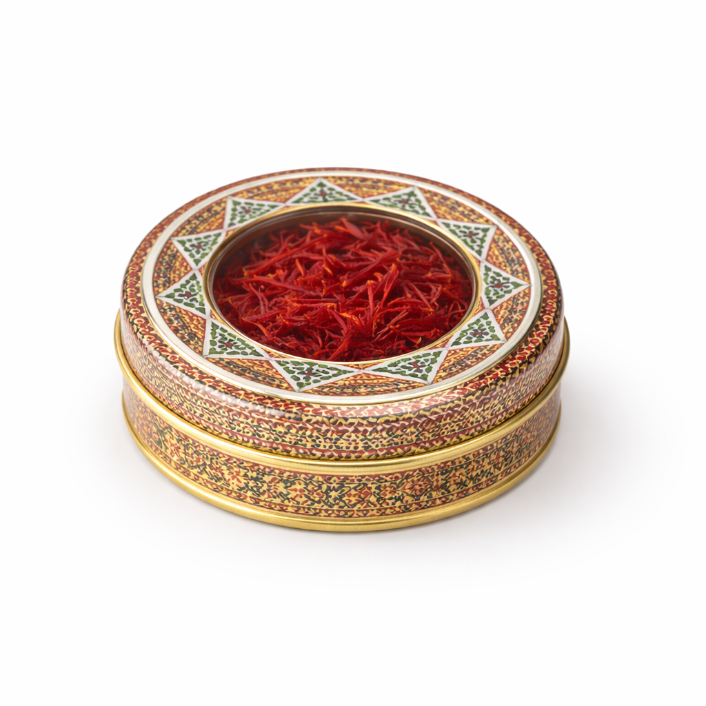 Wholesale Super Negin saffron 10-gram professional sample format. Intended for kitchen trials, menu development and small-scale retail testing. Allows chefs and specialty retailers to evaluate color strength, aroma release and full red stigma selection under real preparation conditions.